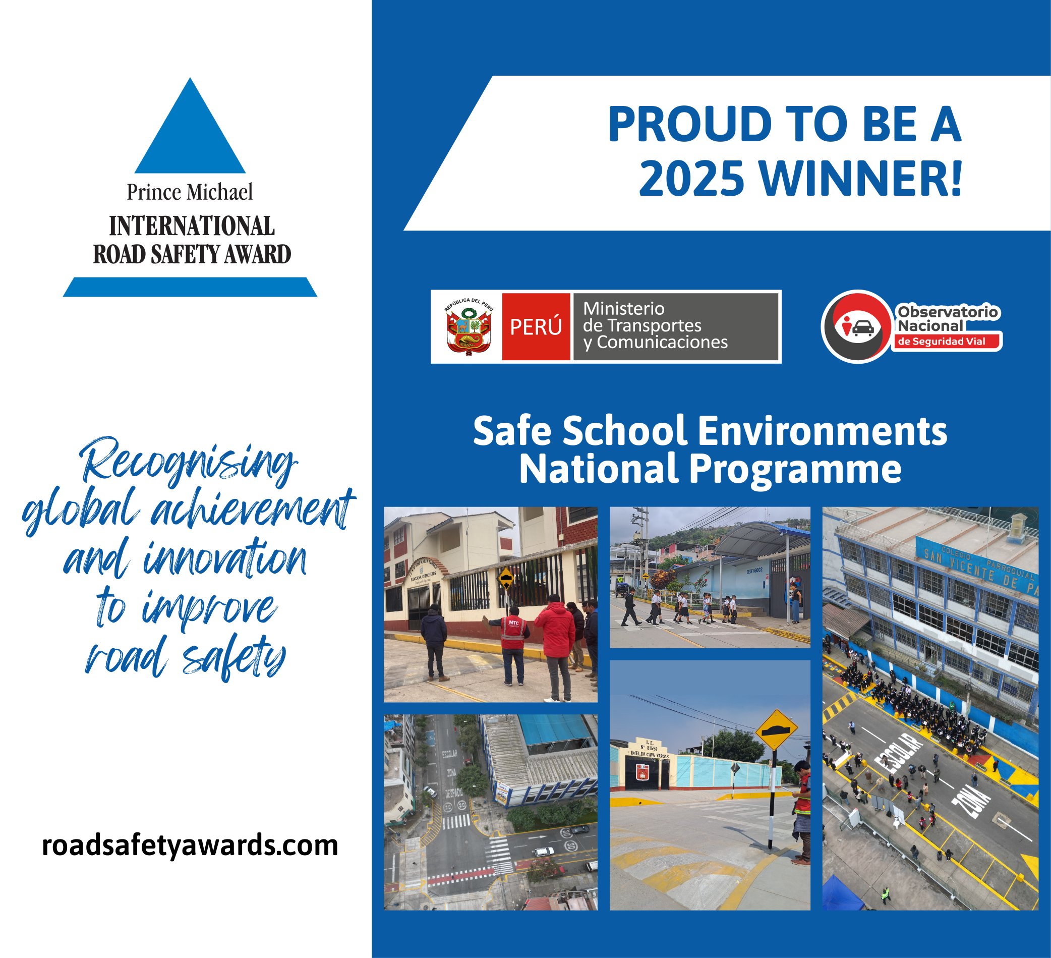 Iniciativa de la Dirección de Seguridad Vial reconocida en los Premios Internacionales de Seguridad Vial Prince Michael 2025. Una nueva distinción internacional coloca al Perú en la agenda mundial de seguridad vial. El Programa Nacional de Entornos Escolares Seguros (PNSE)...